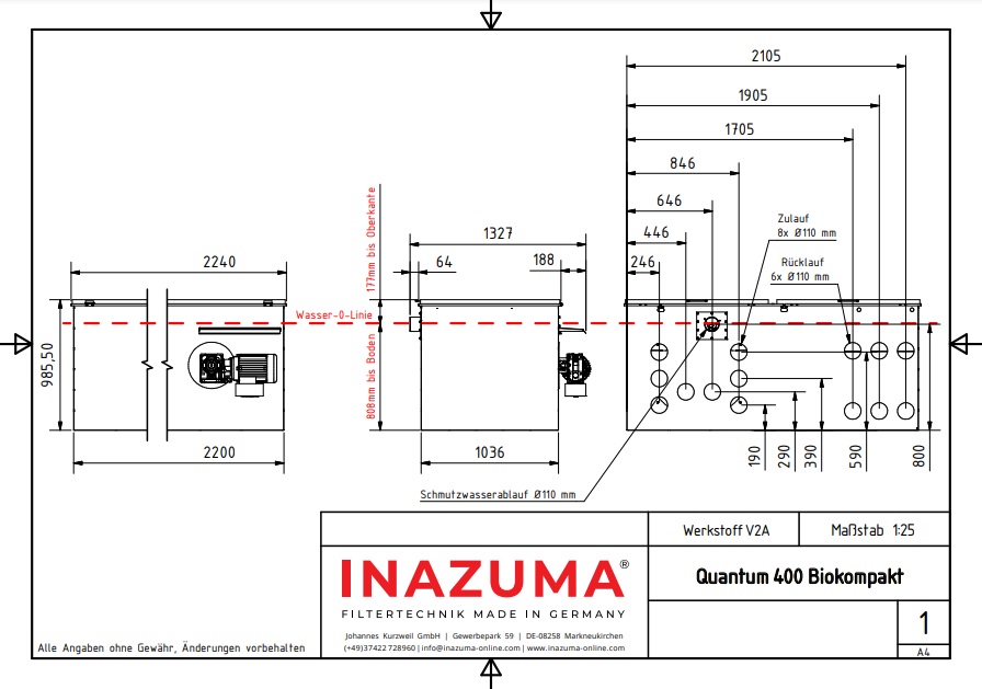 Inazuma uses food-grade, industrial-quality stainless steel V2A for the filter housing. In addition, Inazuma drum filters come with features such as dry-run protection, safety overflow, and more as standard equipment.