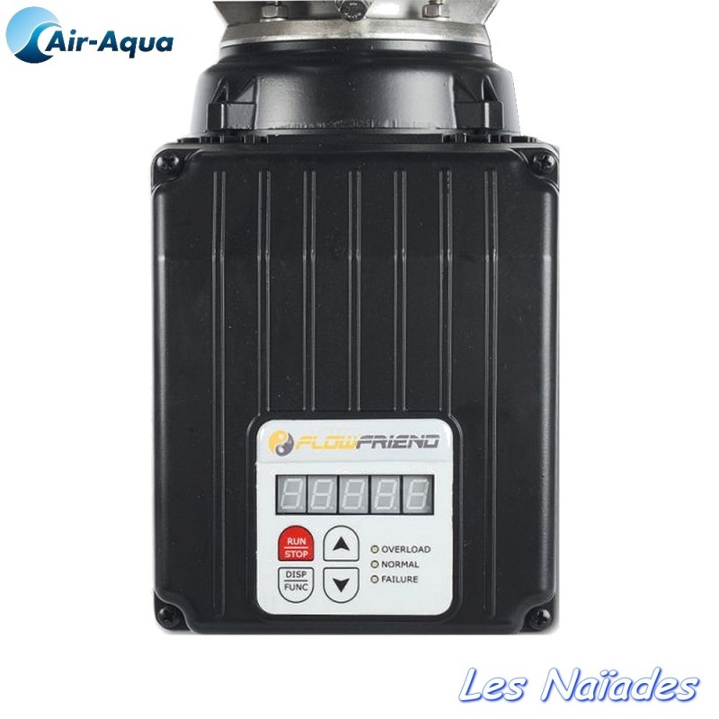 Each type of FlowFriend has an adjustable speed (600 - 2550 rpm). The pump is equipped with an adjustment screen that also displays power and time.