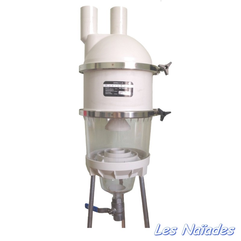 A transparent container makes it possible to see the deposit of particles separated, a valve makes it the back wash.