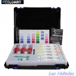 The set allows the measurement of pH values, carbonate hardness KH, total hardness GH, nitrites, nitrates and ammonia.